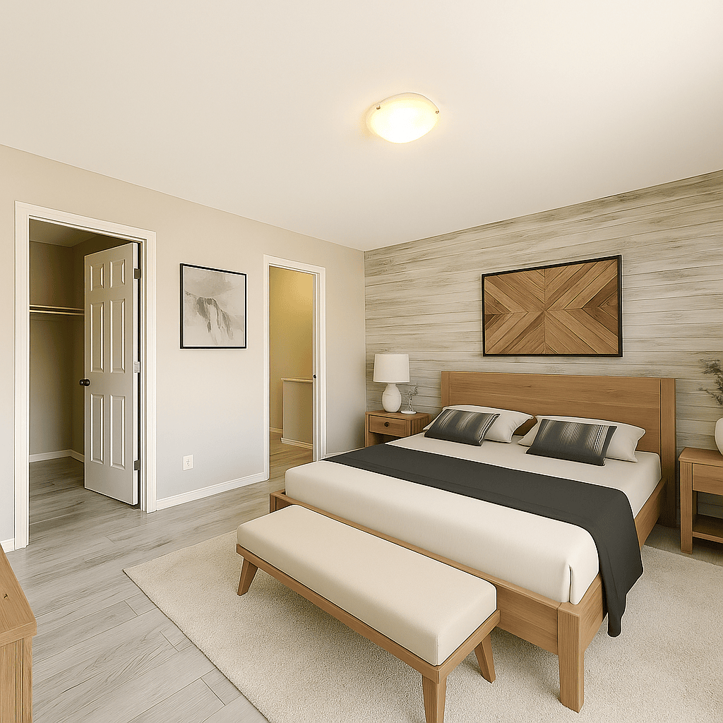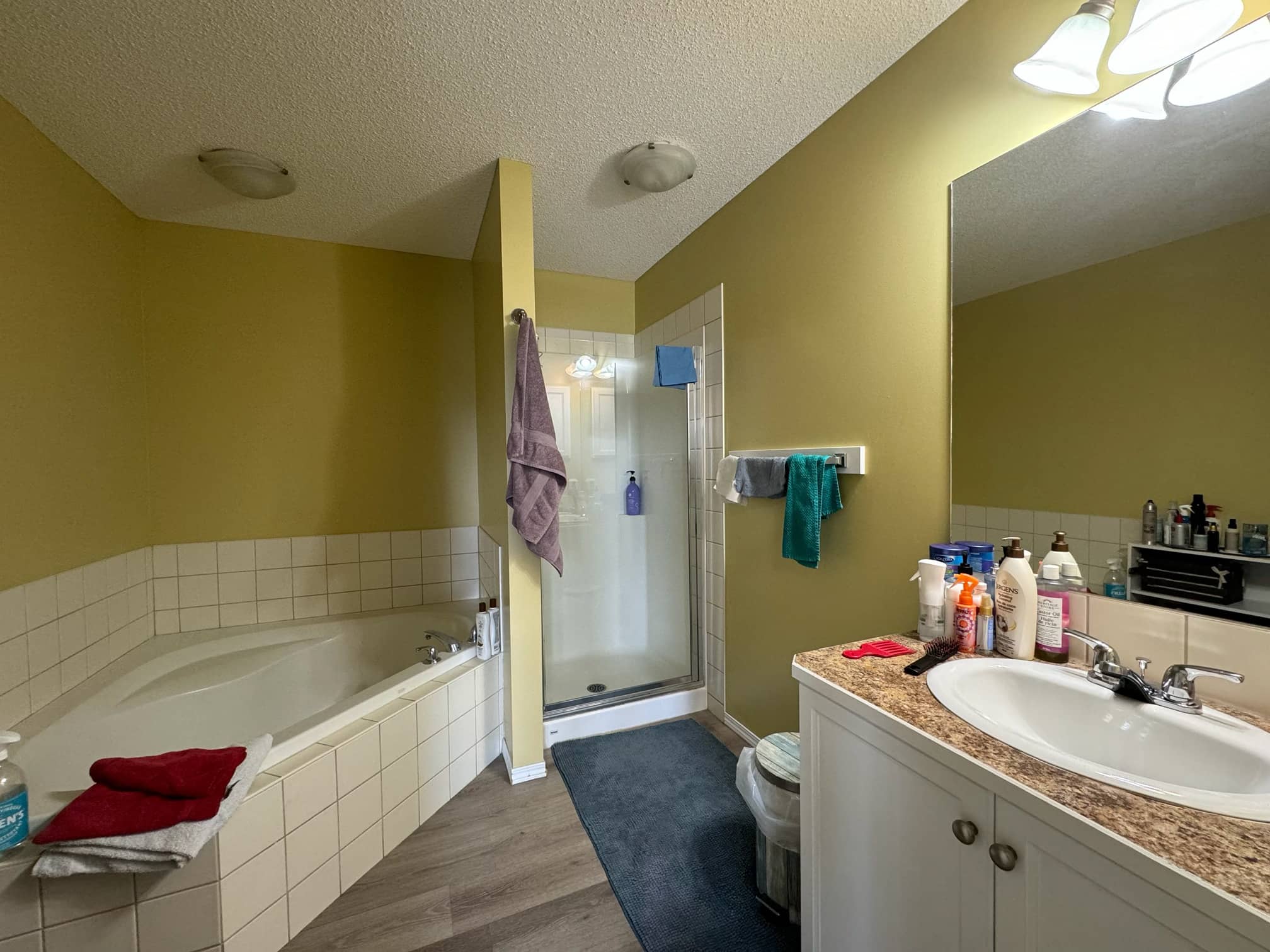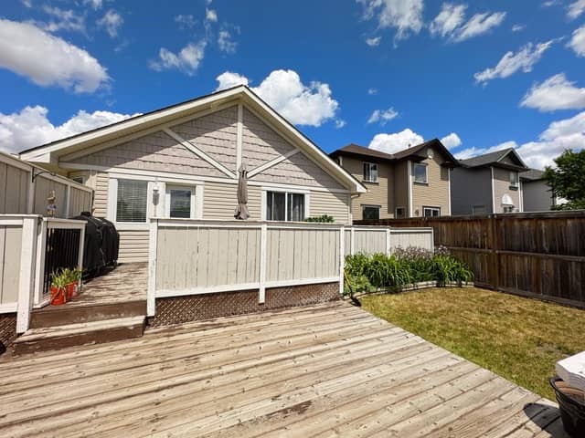 An excellent property in a convenient location! 2 bedroom home including a full bathroom and a huge ensuite with soaker tub, kitchen with fridge, stove, and plenty of counter space, a living room with a fireplace, basement, a finished double car attached garage and laundry hookups. Fenced yard in back with landscaping improvements and a two-tier deck. Easy access to a park from the backyard.